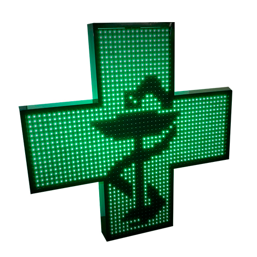 Cruz de farmácia desenvolvida com tecnologia LED, caixa estanque para exterior.