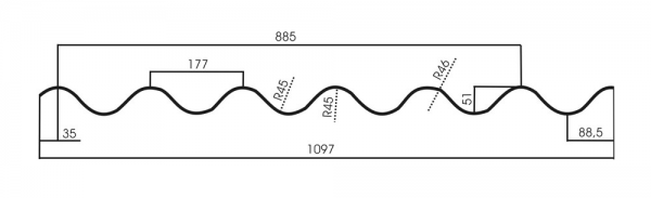 Chapa policarbonato ondulado WAVE com 1 mm de espessura e 1100 de largura.