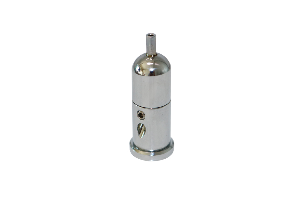 Suporte embelezador cromado para fixar a bolsa ao teto ou ao chão.