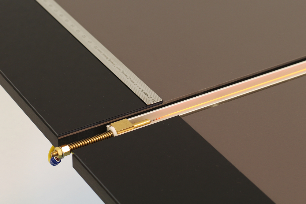 Equipada com batente lateral. Tanto a temperatura como a altura de trabalho da resistência são ajustáveis. A temperatura de aquecimento é contínua e pode ser controlada através de um controlador digital.