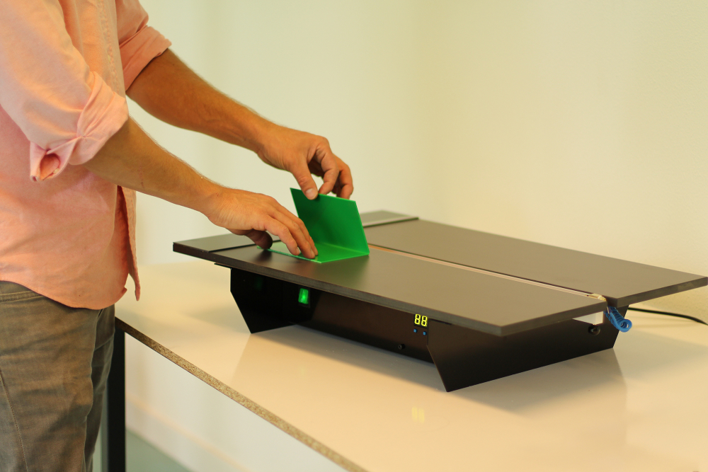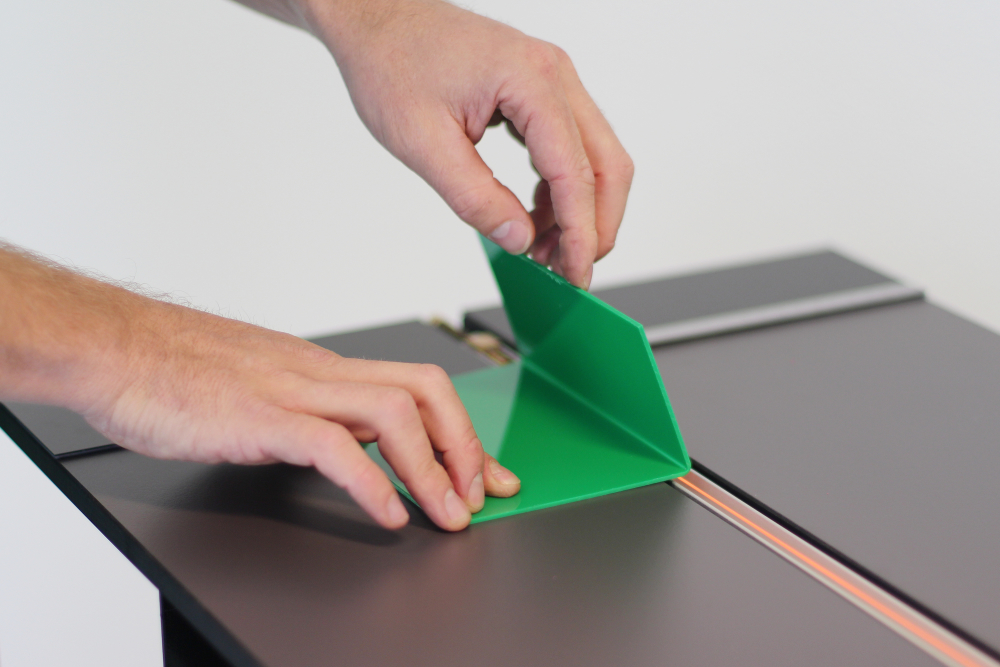Máquina de dobrar plásticos profissional com características básicas para execução de trabalhos simples. Superfície de trabalho de elevada durabilidade, resistente ao calor e aos riscos.