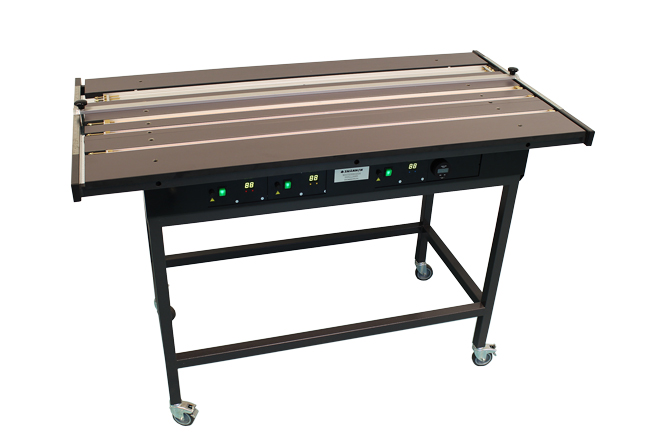 Máquina de dobrar plásticos profissional, construída com perfis e fios de aquecimento facilmente ajustáveis. A temperatura do fio de aquecimento é contínua e pode ser controlada com um controlador EV (para um fio de aquecimento) ou DB (para dois fios de aquecimento).