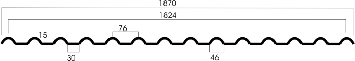Chapa policarbonato perfilado OMEGA com 0,8 mm de espessura e 1870 mm de largura.